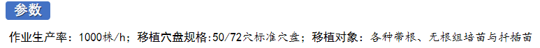 扦插种苗和组培扩繁后种苗向穴盘移植的作业量巨大,这类种苗多以集群、无次序、散状移植进穴盘的基质中,需要消耗大量人工劳动力,特别是带根苗,人工作业难度大、效率低。散苗移植机可针对扦插不带根或组培繁殖带根散状种苗,通过机器视觉识别散状苗的特征点,自动高效捡拾散状苗、顺序移植到穴盘的基质中。对于柔嫩种苗和带根种苗,散苗移植机的移植作业效率可达人力移植作业的10倍。