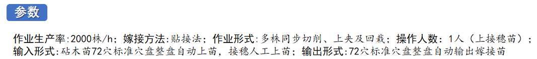茄果类半自动嫁接机以番茄、茄子及辣椒种苗为作业对象,自动整盘上砧木苗,人工上接穗苗,可实现接穗苗与砧木苗的多株同步切削、对位、上夹、穴盘回栽及穴盘嫁接苗输出高效自动作业。与人工移植作业相比,穴盘苗移植作业效率可提高倍5以上。